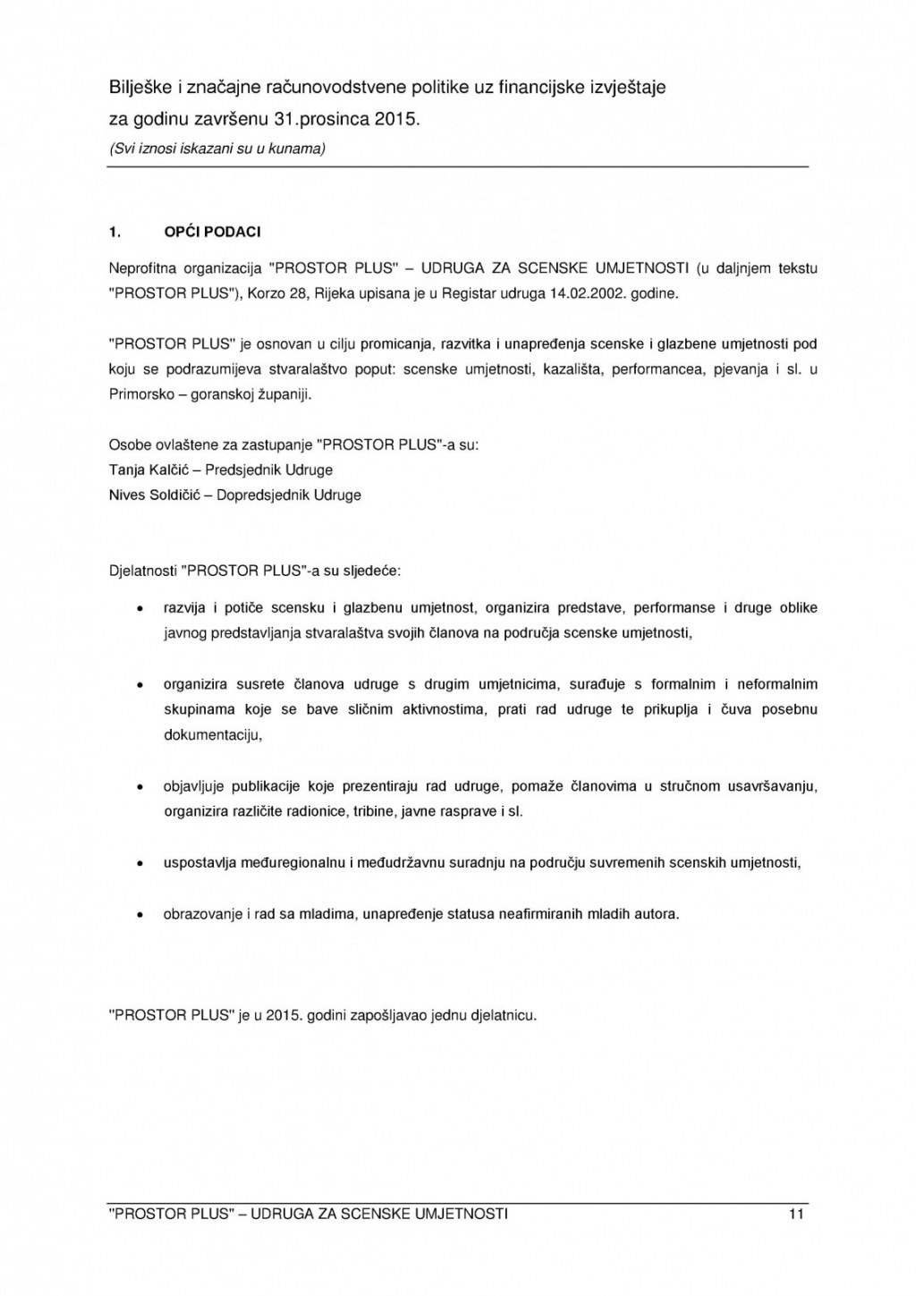 Izvještaj o radu Prostora Plus 2015